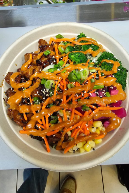 I took out Mongolian beef and noodles. The portion was great, the vegetables were fresh and the flavor was delicious. However, the beef was way toooo salty. After finishing the bowl, I drank at least 5 cups of water and still felt thirsty for that day. Please reduce the salt in the marinated sauce for the beef. In summary, 4.5 stars for this meal. Will visit again if I pass by.